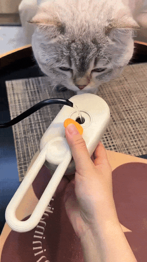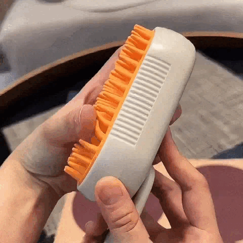 Zoek de vernevelingsknop die zich aan de bovenkant van de borstel bevindt. Druk erop om de vernevelingsfunctie te activeren. Er zal een fijne spray van de vloeistof uit de nevelopening van de borstel komen, waarmee de vacht van je huisdier wordt voorbereid op een vochtige verzorgingssessie die reinigt en verfrist.