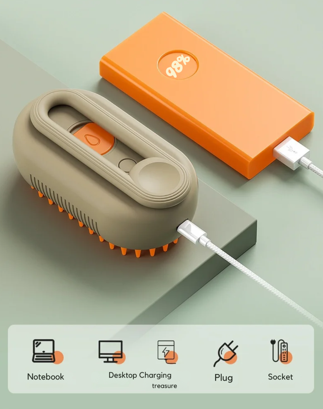Borstel altijd en overal! Geschikt voor opladen via powerbanks, notebooks, desktopcomputers en andere USB-poorten.