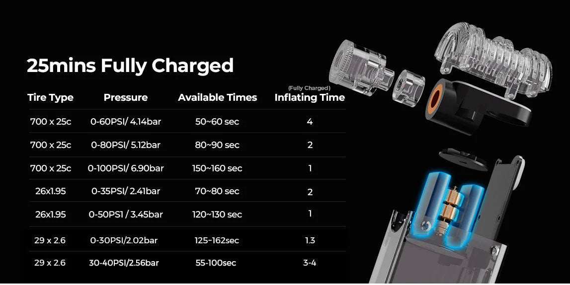 Met een hoge drukcapaciteit kan deze pomp uw banden tot wel 100 psi oppompen. Geen onder opgepompte banden meer, maar een soepele en veilige rit!