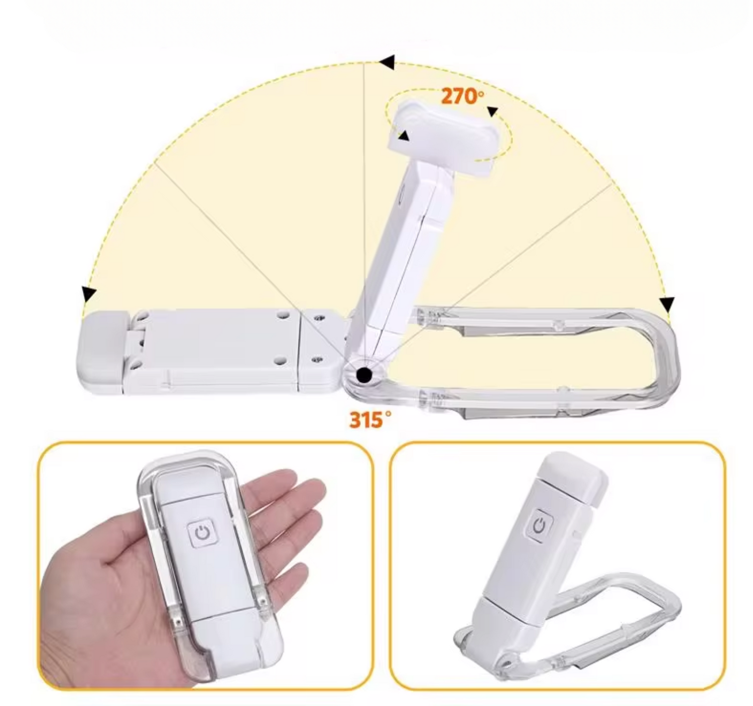 Het volledig flexibele ontwerp maakt het mogelijk om de LED-lens 90° naar links en rechts in horizontale richting te draaien en 45° naar beneden te kantelen. De 315° flexibele houder buigt in elke gewenste hoek voor de beste leeservaring, zonder dat je het licht telkens opnieuw hoeft te positioneren.