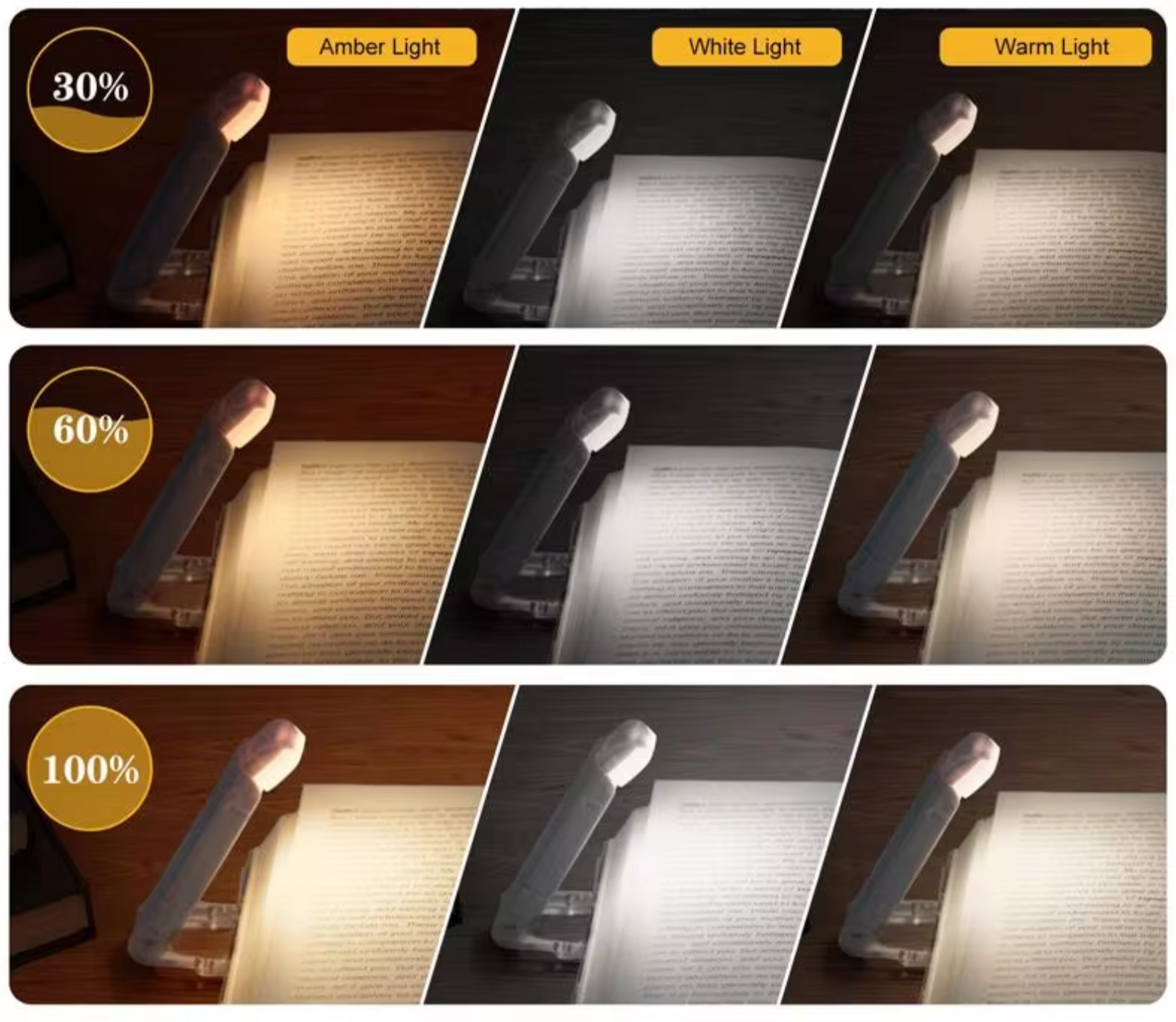 Zachte witte gloed, met één druk op de knop kun je schakelen tussen 9 lichtmodi: traploos dimbare helderheid van 0%-100% en verstelbare lichttemperatuur (warm, wit, amber). De zachte, verblindingsvrije gloed helpt je kinderen te genieten van lezen zonder hun ogen te belasten. Houd de knop lang ingedrukt om de lichttemperatuur aan te passen en kort ingedrukt om de helderheid te regelen.